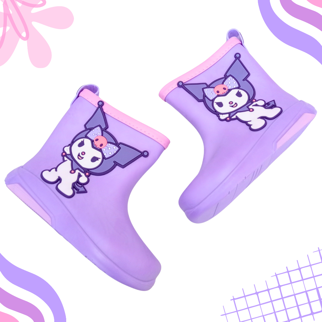 Botas para lluvia inspiradas en Kuromi , el popular personaje de Sanrio, suelen combinar funcionalidad con un diseño adorable y único. Son ideales para fans de Kuromi que buscan agregar un toque de personalidad a su look en días lluviosos, combinando estilo con comodidad.