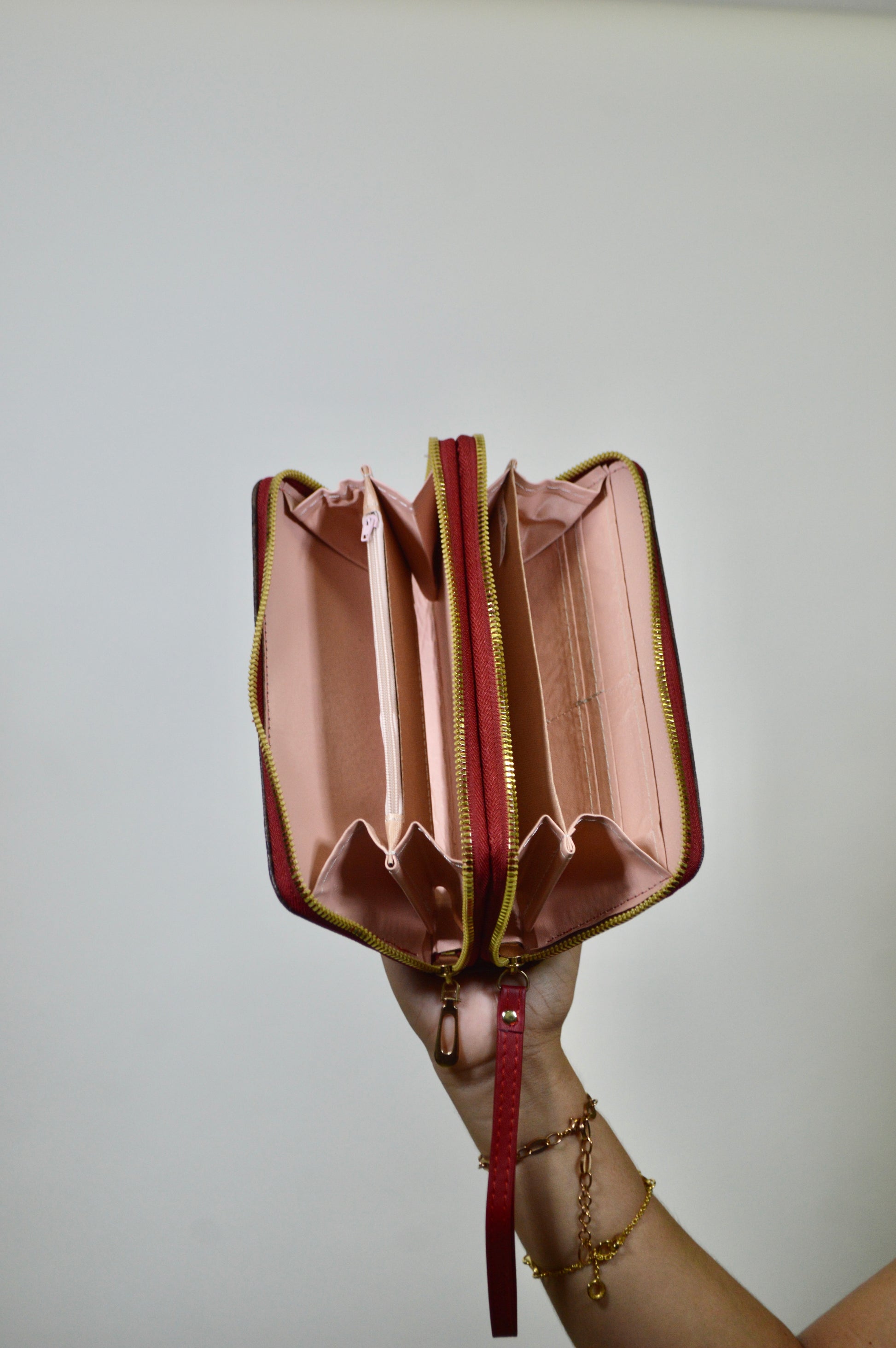 Cartera práctica de doble cierre con correa para muñequera, elaborada con material suave al tacto y de excelente calidad. Cuenta con doble cierre que brinda mayor seguridad y mejor organización para billetes y tarjetas. Su diseño práctico, resistente y versátil la convierte en un accesorio ideal para el uso diario.