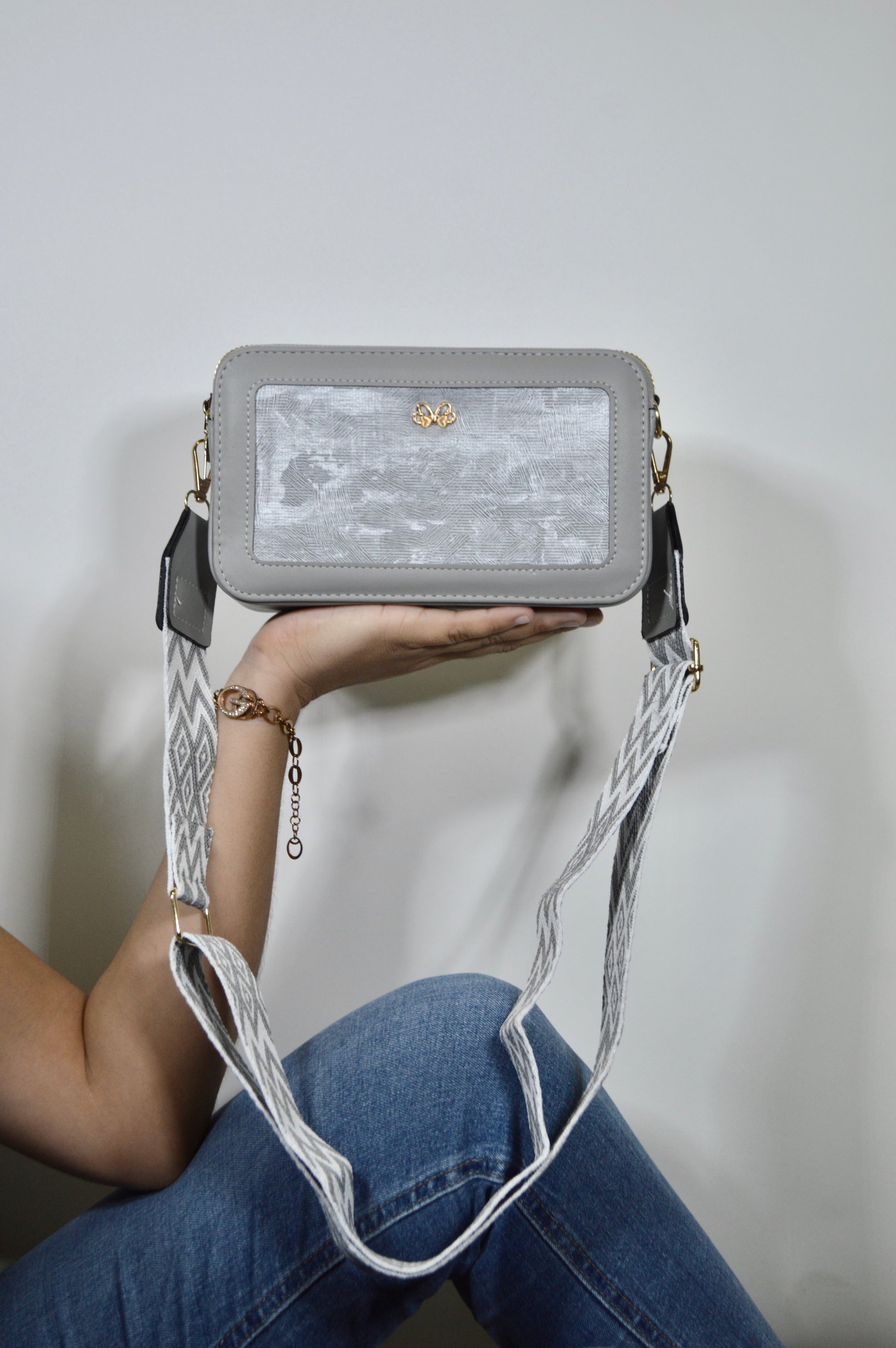Crossbody cuadrado elaborado con material suave y de excelente calidad. En el frente cuenta con un detalle decorativo en terciopelo que le da un acabado elegante y distintivo. Incluye strap para mayor comodidad y un interior espacioso para llevar lo esencial.