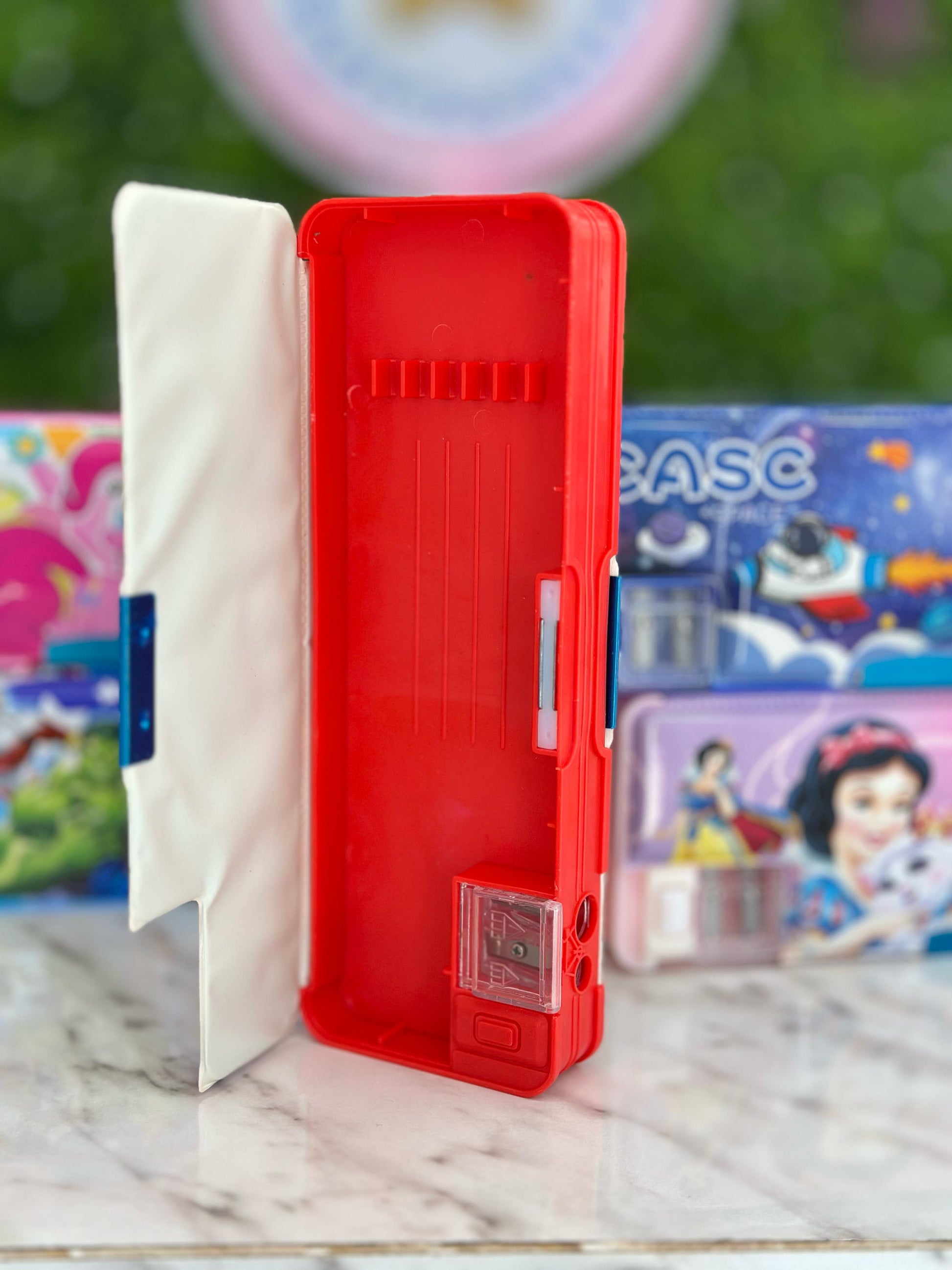 Organiza tus útiles escolares con esta práctica y versátil lapicera de plástico. Diseñada pensando en la funcionalidad y el estilo, cuenta con un sacapuntas doble integrado (uno para lápices delgados y otro para lápices gruesos) y un pequeño compartimento que almacena los residuos del sacapuntas, manteniendo todo limpio y ordenado.