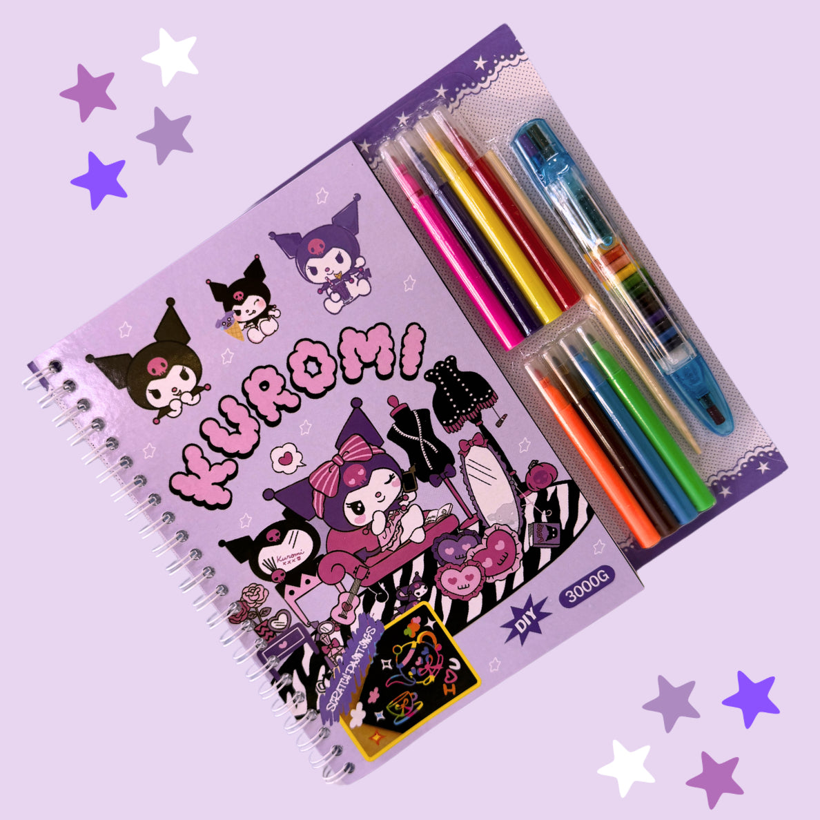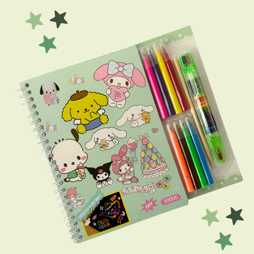 Pasa horas de diversión con el libro mágico, raspa con su palito de madera integrado y revela los colores. incluye hojas para colorear y dibujos para pintar. También incluye 8 plumones y una exclusiva pluma con crayolas integradas en todos los colores. Este articulo se envia surtido.