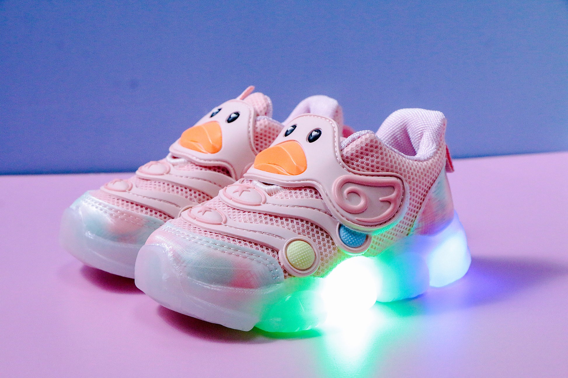 Estos tenis de patito son la combinación perfecta entre estilo, comodidad y funcionalidad. Diseñados para ser resistentes y duraderos, cuentan con un práctico broche de velcro que asegura un ajuste firme y fácil de poner. Su material transpirable permite que los pies se mantengan frescos y cómodos durante todo el día. Además, con solo presionar un botón en la planta, los tenis encienden luces coloridas que harán que cada paso brille con diversión. Los detalles con relieve en el diseño añaden un toque especial y único. ¡Ideales para que tu pequeño camine con estilo y disfrute de su comodidad mientras juega y se divierte!