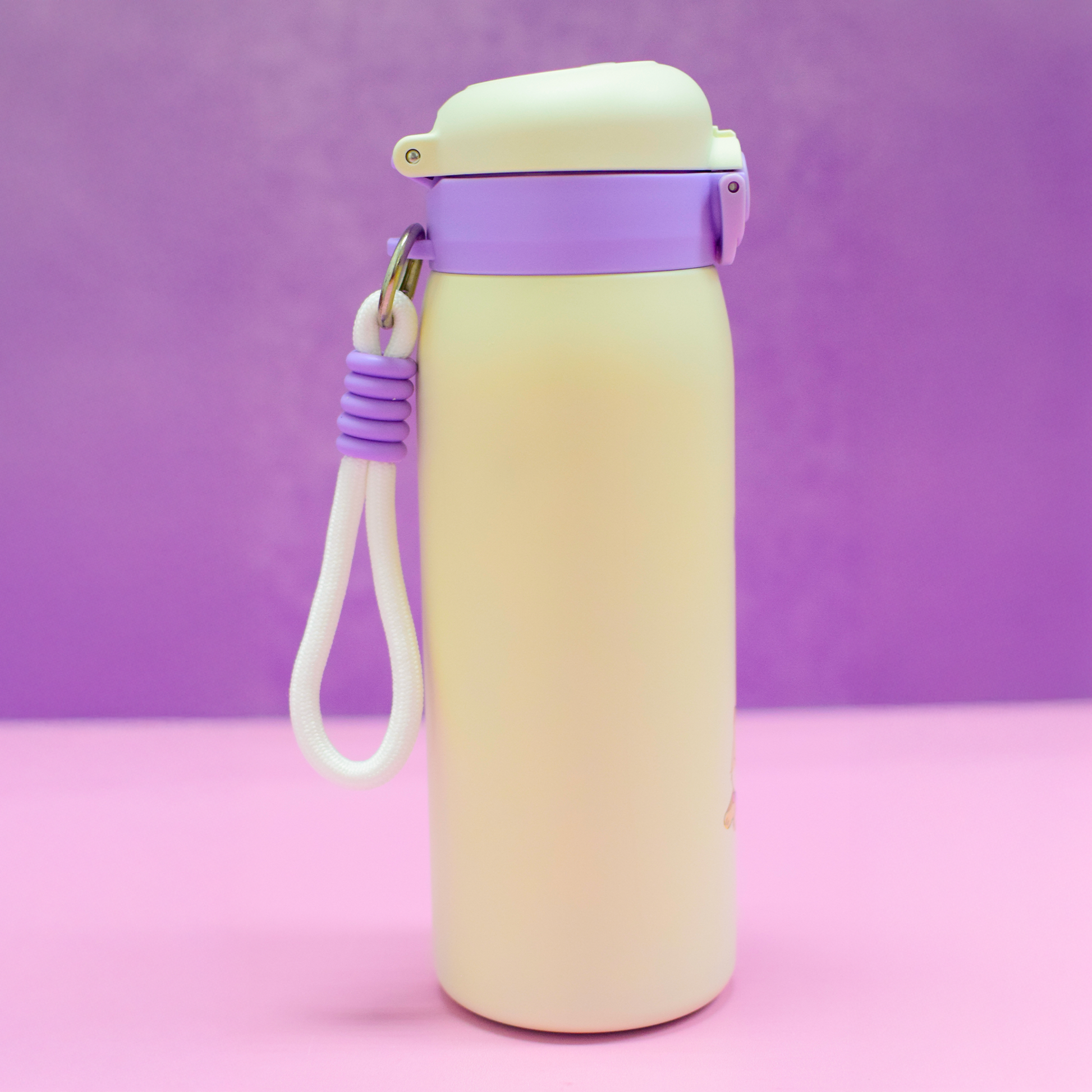 Termo de acero inoxidable con capacidad de 500 ml con hermoso diseño de animalitos y tapa con bloqueo que evita derrames. Elaborado con material resistente y duradero, mantiene bebidas frías o calientes de manera práctica y con estilo.