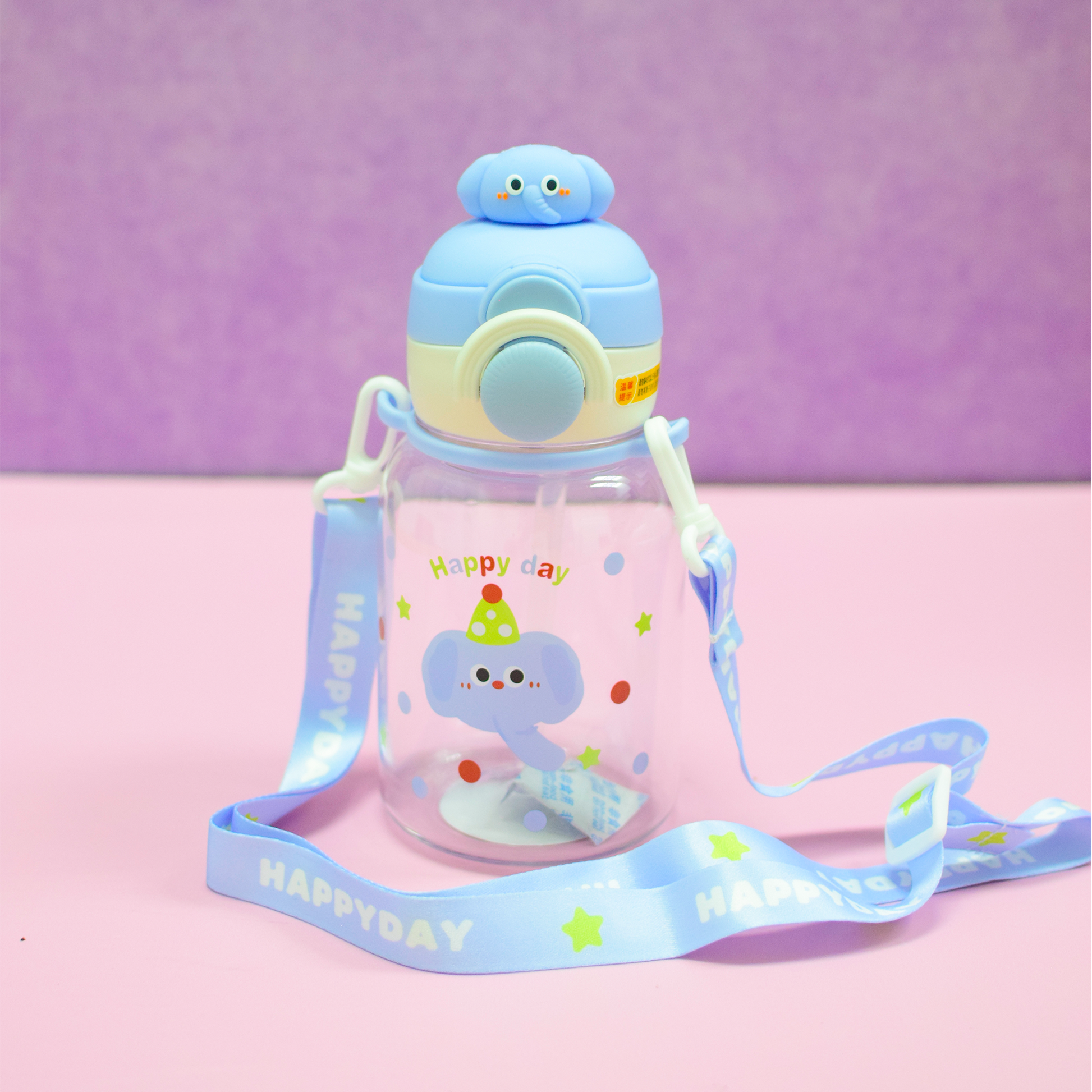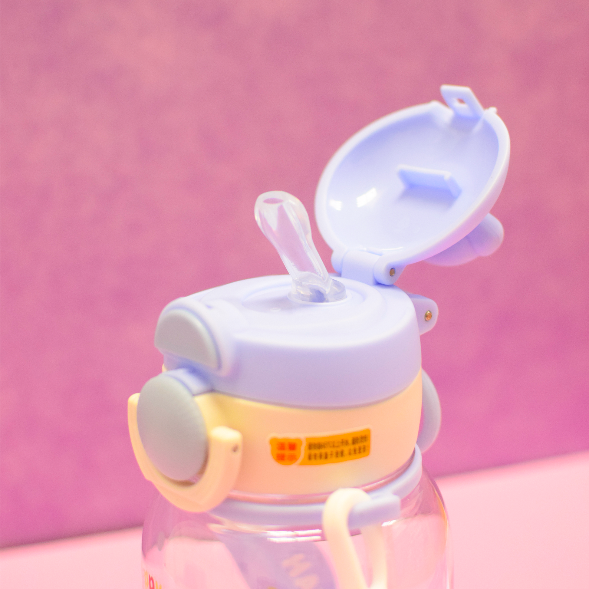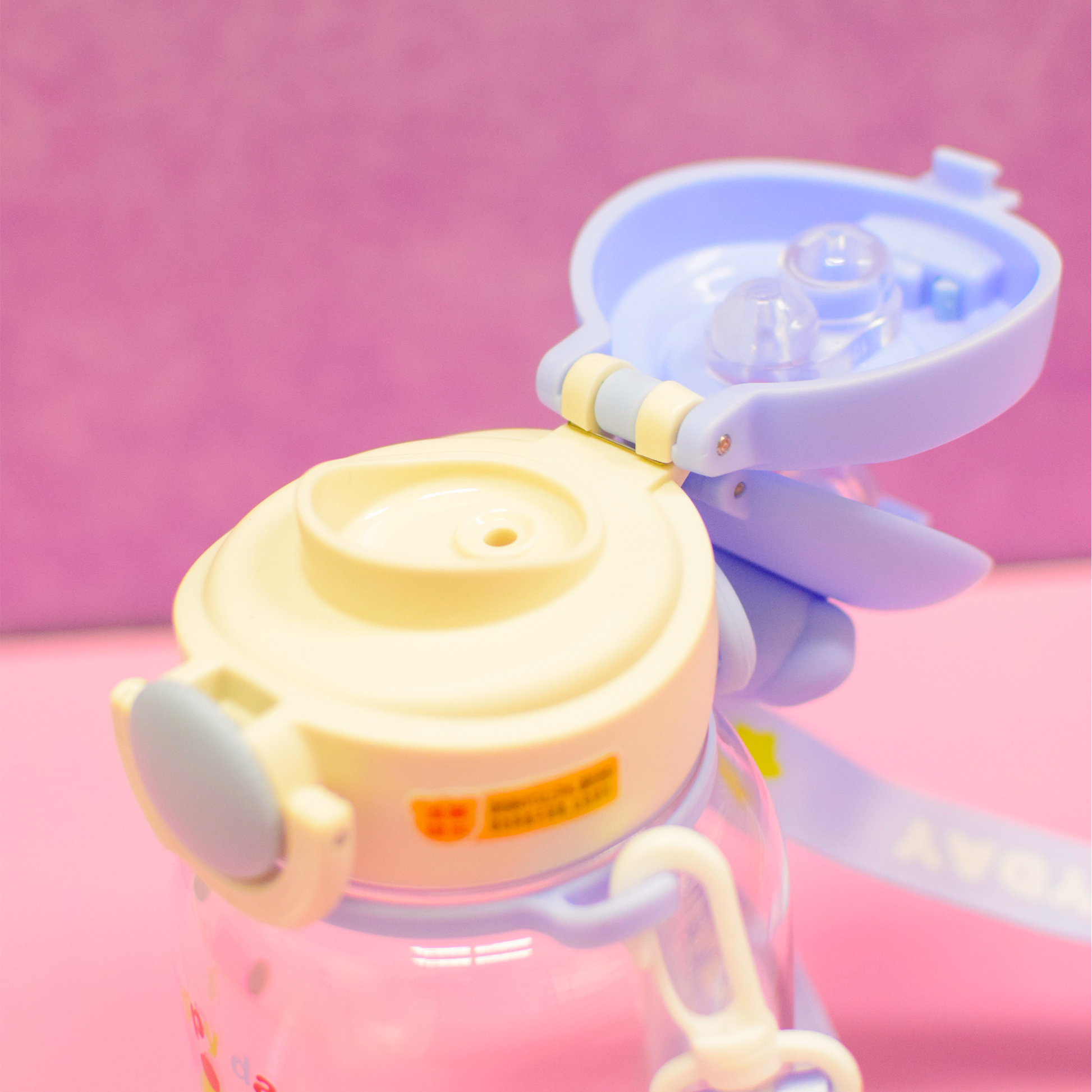 Termo de plástico con capacidad 650 ml con correa, popote y tapa con bloqueo que evita derrames. Elaborado con material resistente y duradero, ideal para el uso diario. Su diseño con tiernos animales combina practicidad y estilo.