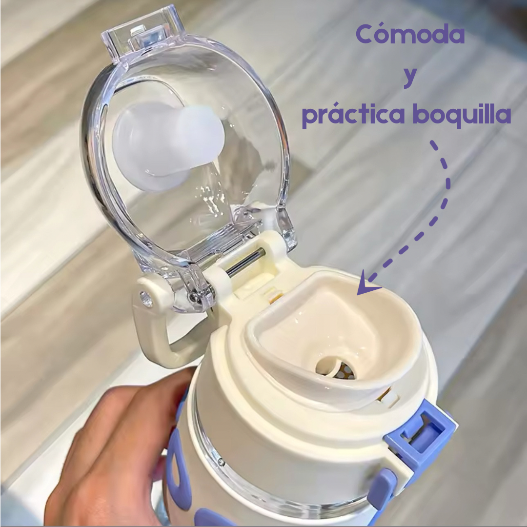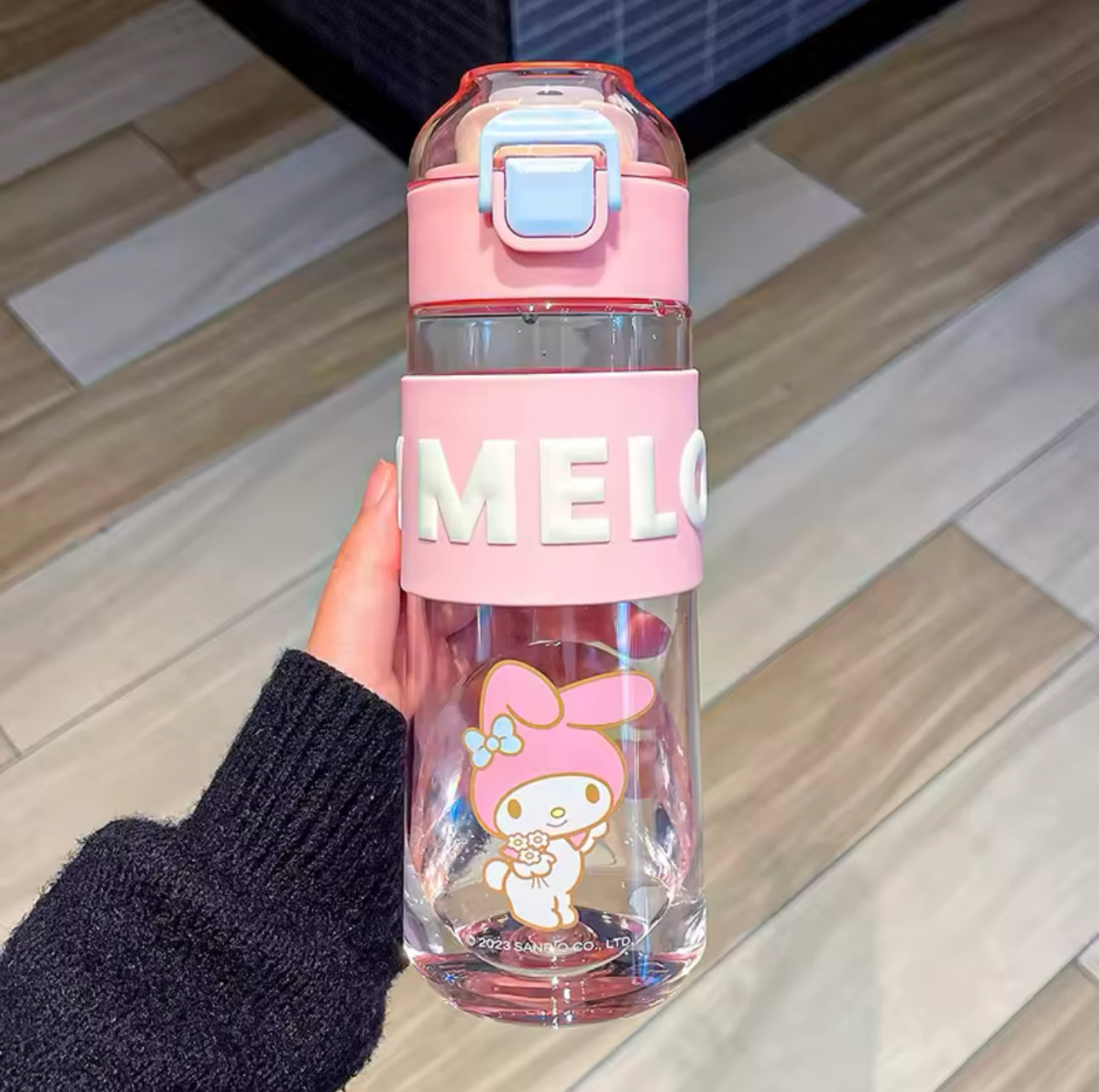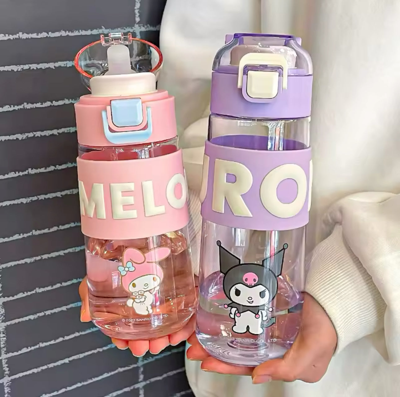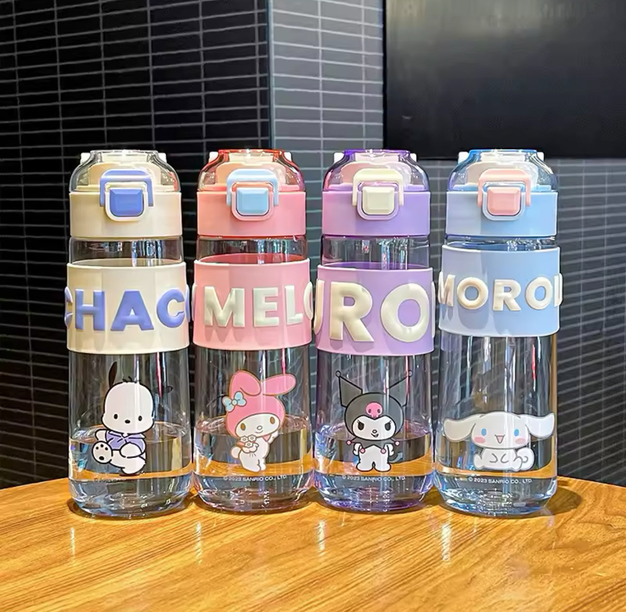 Termo de plástico sanrio, diseño de los nombres de los personajes en silicón su capacidad es de hasta 620 ml, tiene sistema antiderrame, boquilla cómoda, cuenta con colador integrado para infusión. Disponible en 4 personajes.