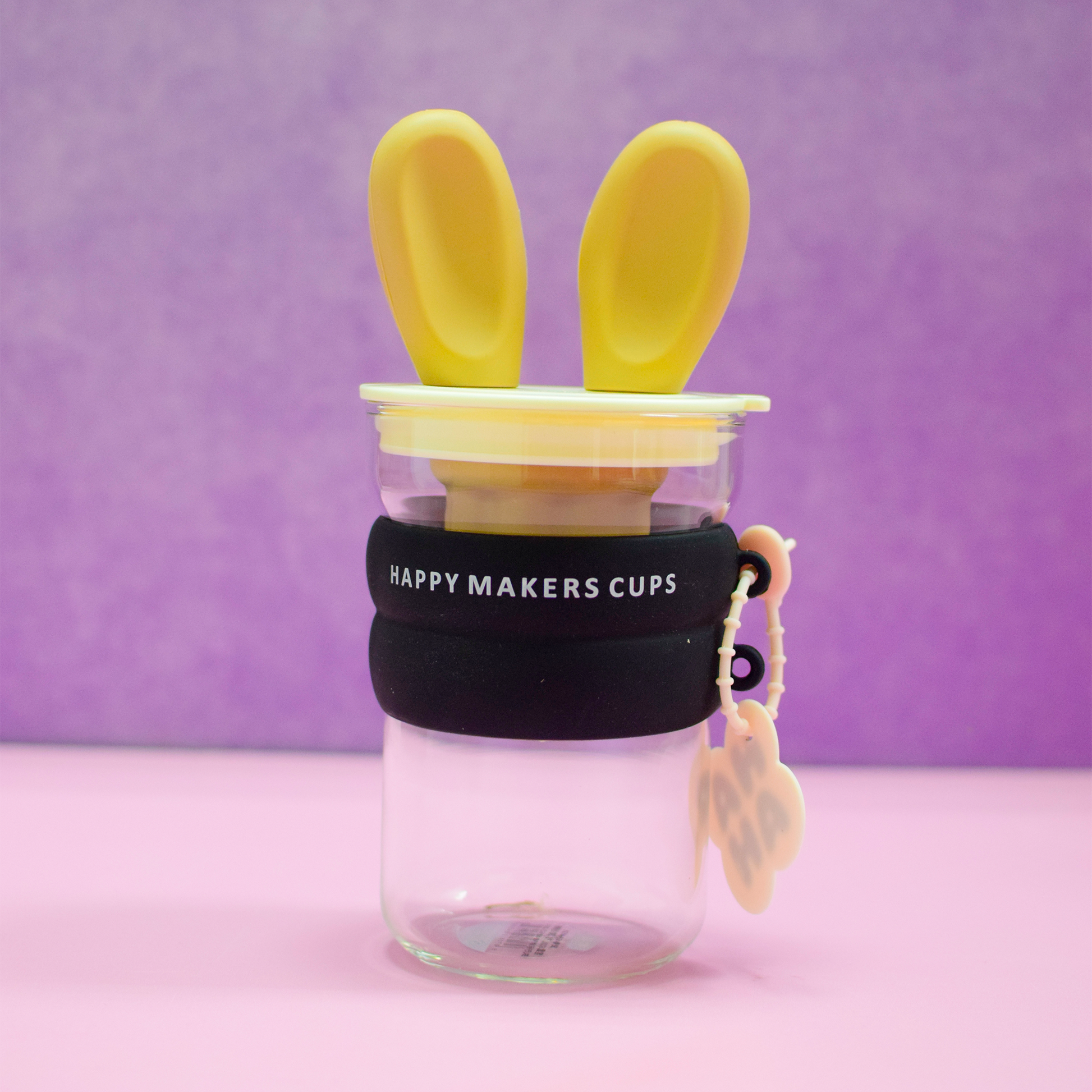 Vaso de cristal que no guarda olores con capacidad de 600 ml incluye filtro para té o fruta y doble popote. Elaborado con material de excelente calidad, ofrece una gran experiencia de uso. Su diseño con decoración de conejo combina funcionalidad y un estilo adorable.