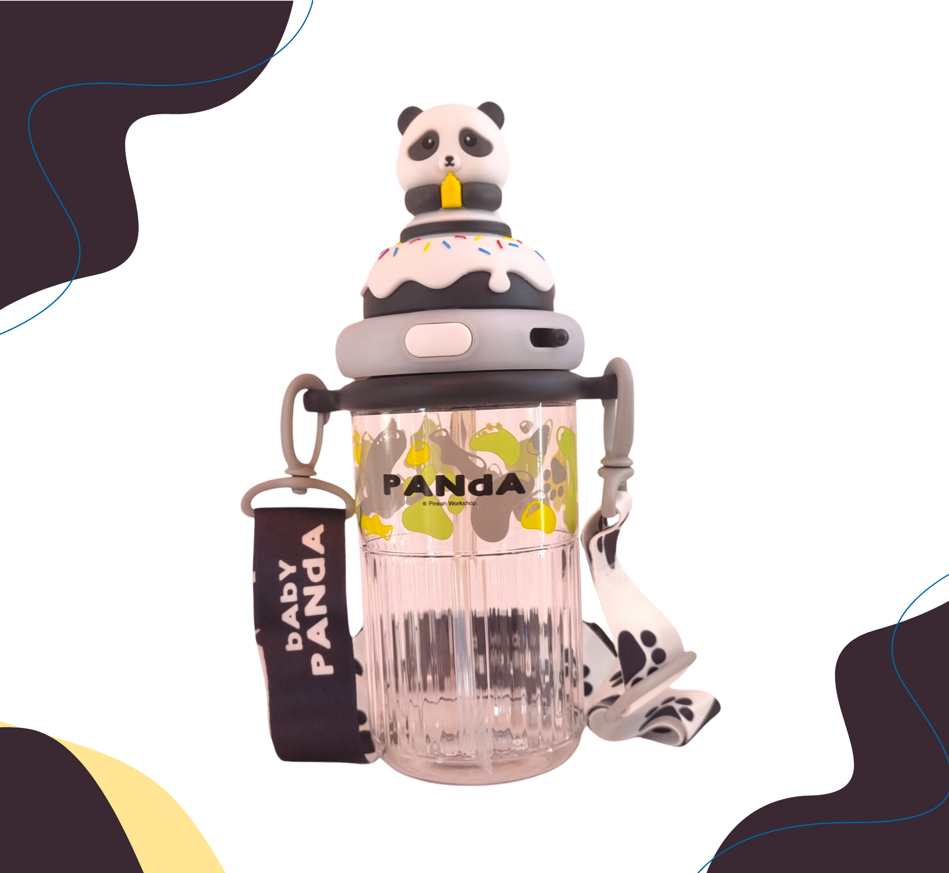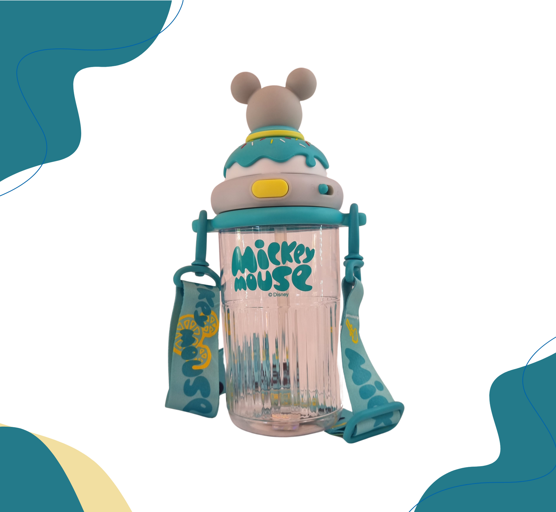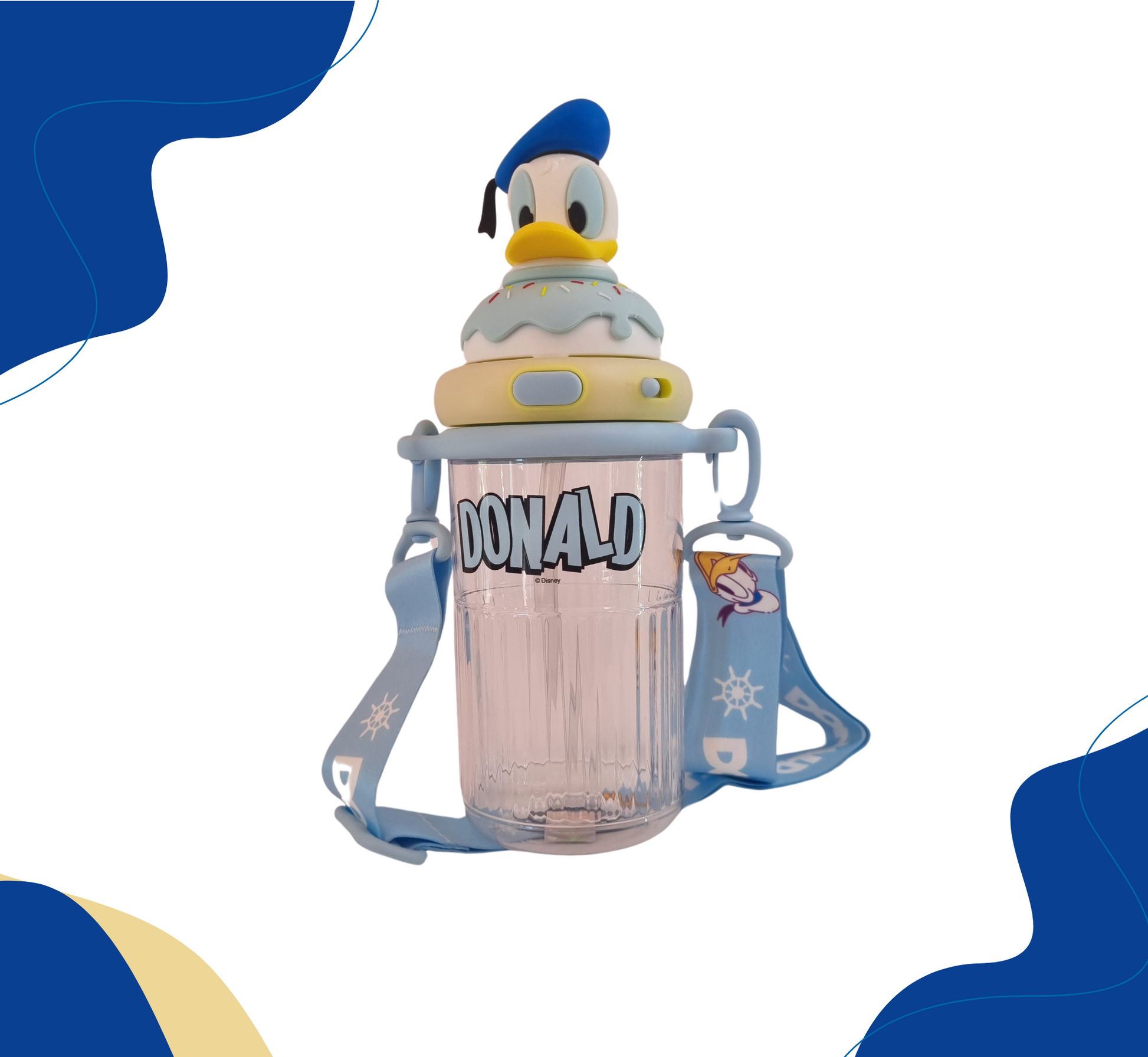 Termo con diseño de candy y personaje en 3D , con seguro antiderrame y doble boquilla, incluye strap, popote y agarradera. Disponible en 9 personajes.